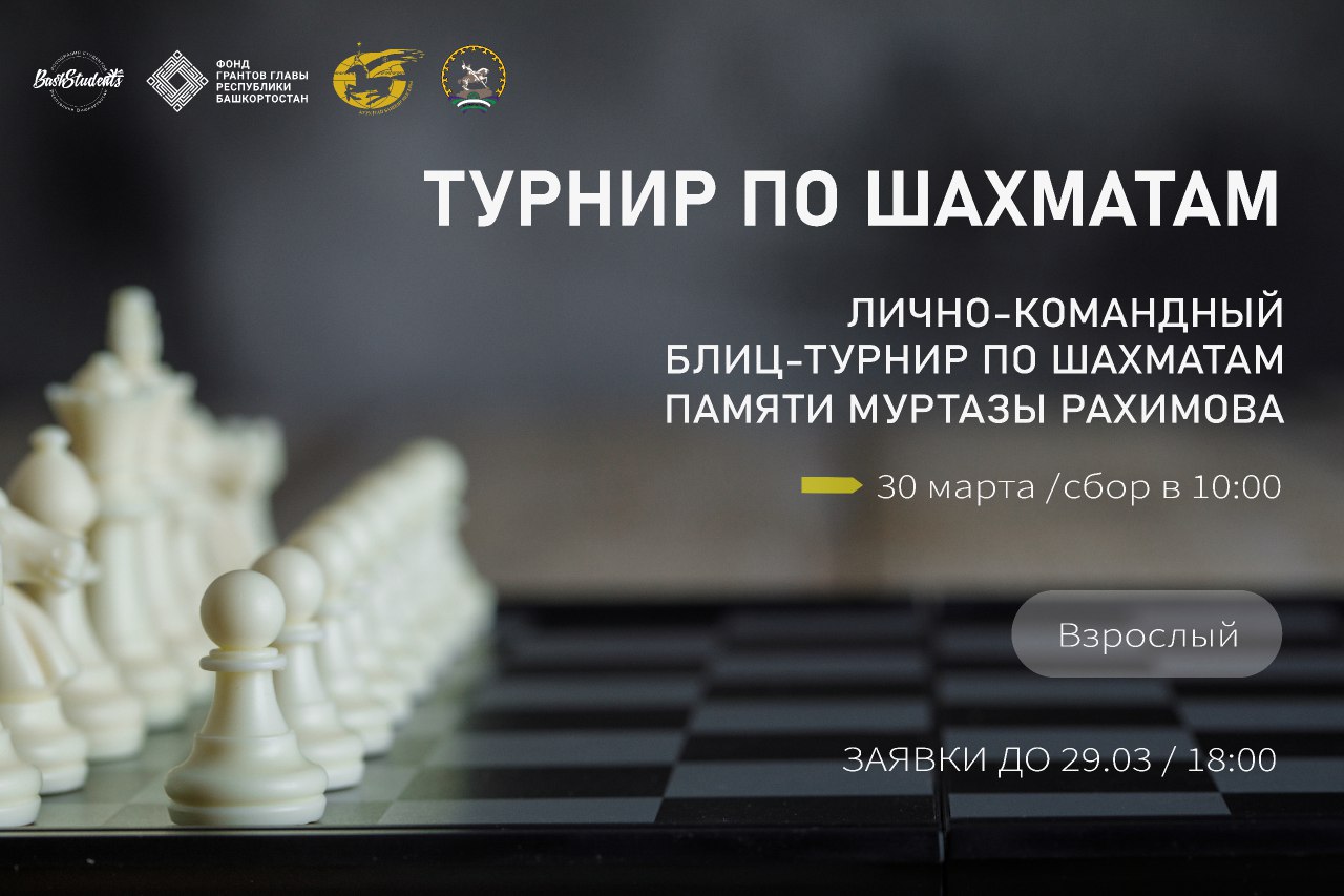 Приглашаем 30 марта на взрослый шахматный турнир памяти первого президента Республики Башкортостан М.Г. Рахимова! Состязание обещает быть захватывающим событием!